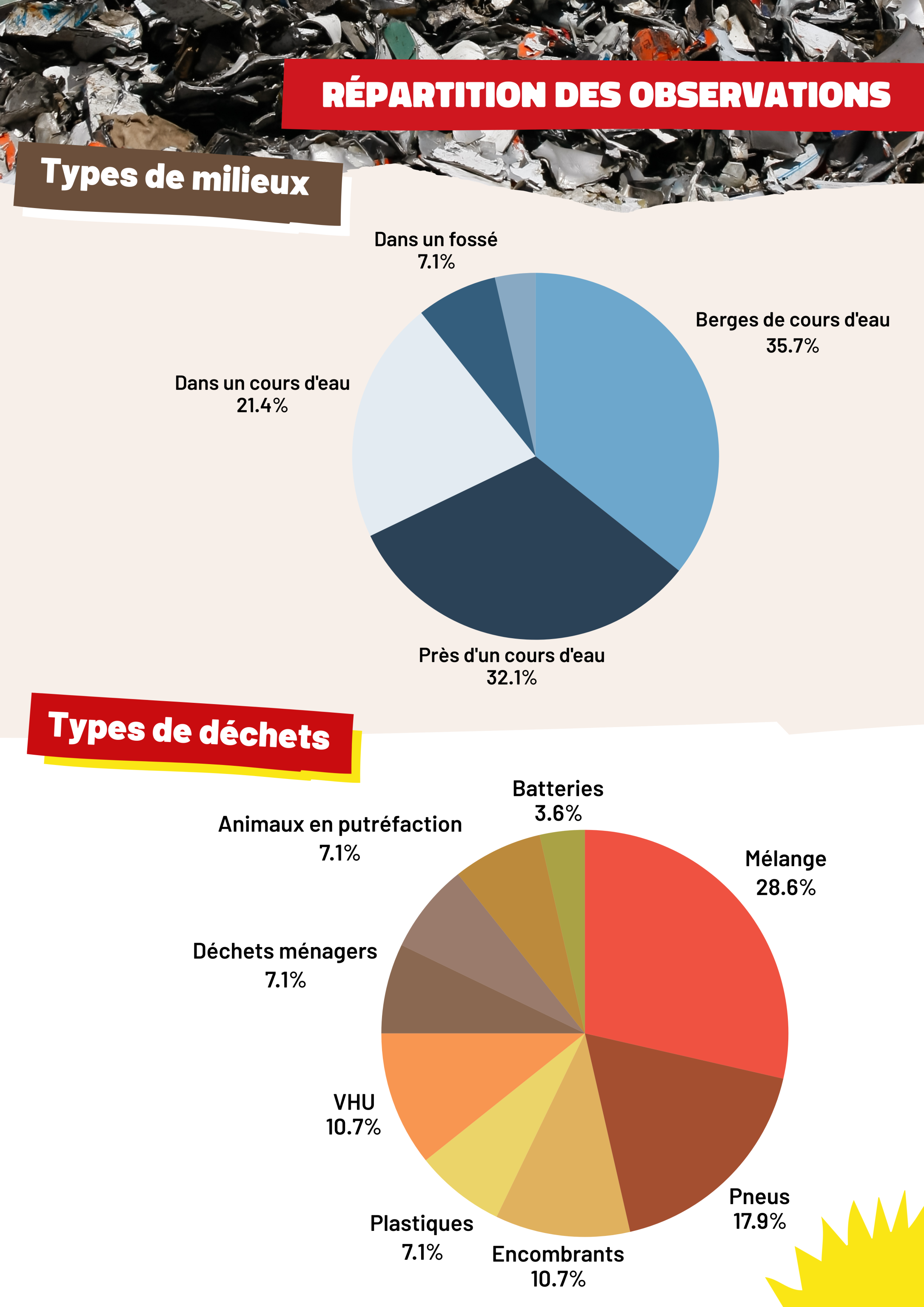 La campagne Eaux Déchets s’est déroulée du 20 juin au 20 septembre et a permis de documenter les déchets présents dans ou à proximité des cours d’eau, mais aussi de mettre en valeur les initiatives locales positives (opérations de nettoyage, gestion responsable, innovations citoyennes…), grâce aux signalements reçus.
